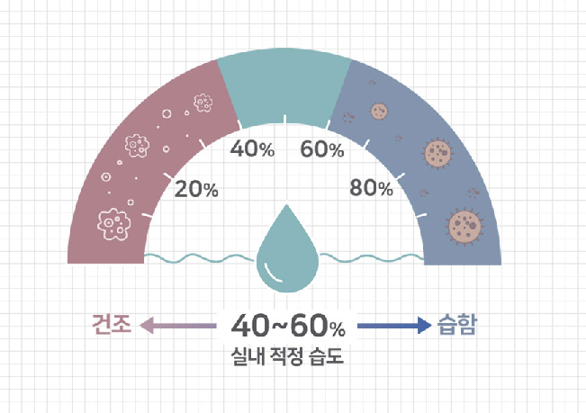 습도가 낮으면 바이러스가 활발하게 되어 감염되기 쉽고, 습도가 낮으면 세균이나 곰팡이가 증식하게 되기 때문에